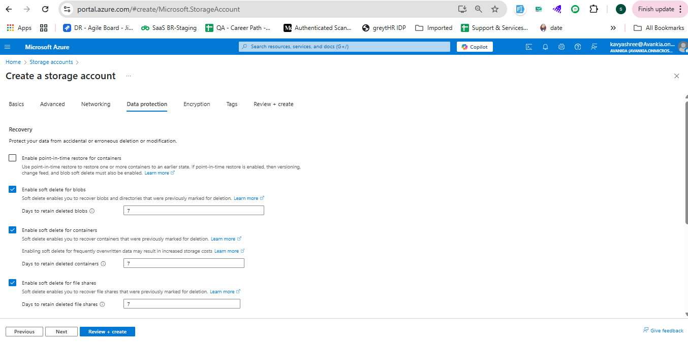 6. Keep the default settings on Data protection, Encryption, and Tags unless your organization requires different settings.