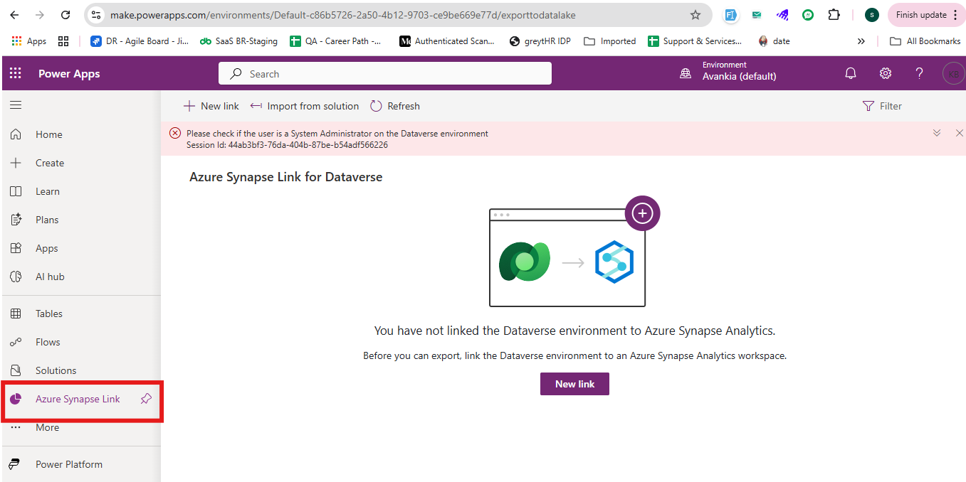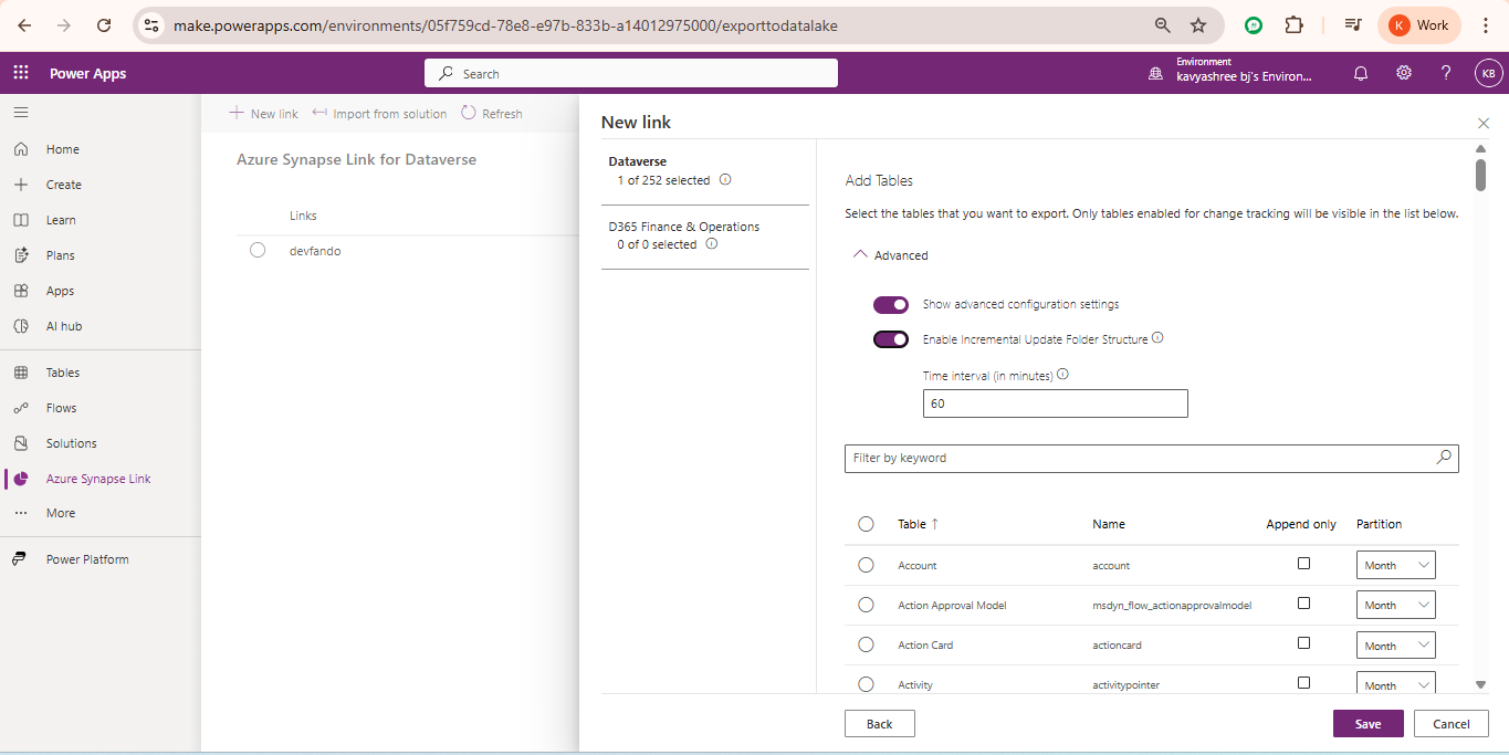 ## Step 2 — Create the Azure Synapse Link from Power Apps / Power Platform