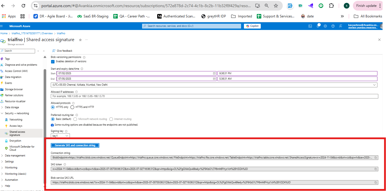 ## Step 4 — Generate a SAS connection string (Shared Access Signature)