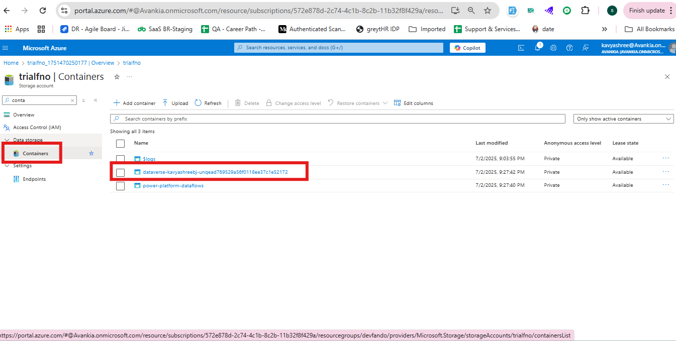 5. Verify: Use the connection string to list containers or check access \ <br>