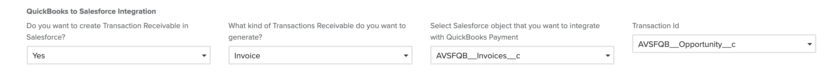 * **Select Salesforce object that you want to integrate with QuickBooks Transactions**\
