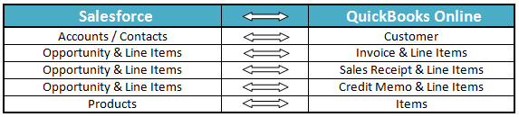 Data flow between Salesforce & QuickBooks Online is shown below.