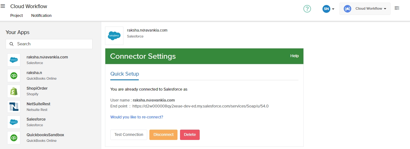 DBSync Cloud workflow connectors secure access to your business applications. Each connector includes authentication methods, triggers, and actions for its specific target app. The same can be configured using the 'My Apps' Section from the 'Home' screen. This article provides more information on configuring your applications securely using DBSync Cloud Workflow.