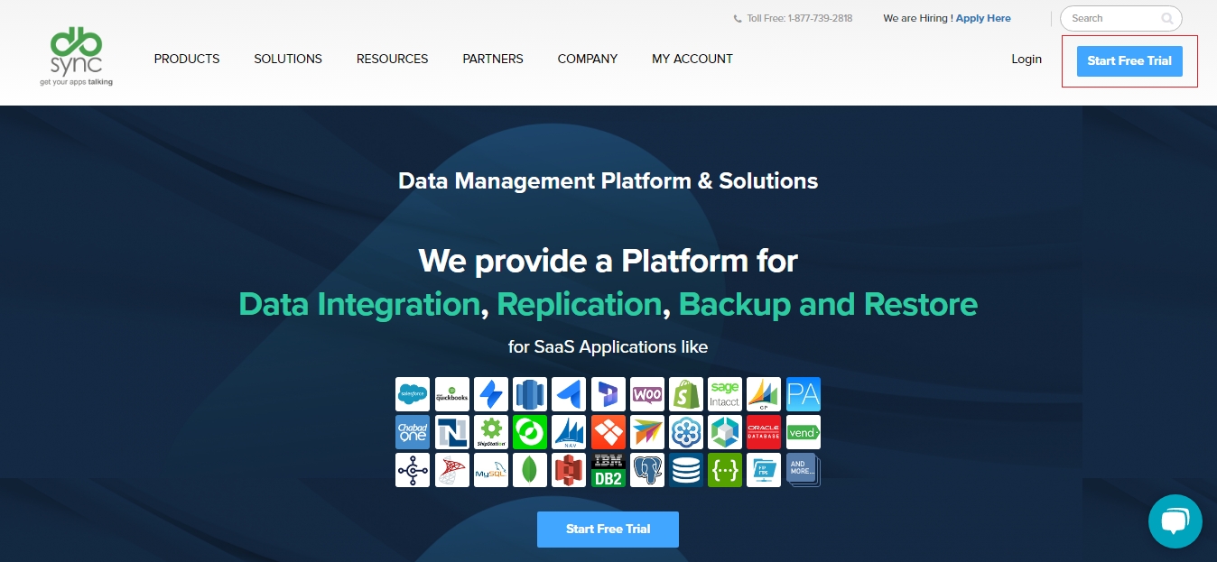 Create a free trial account by navigating to the DBSync website.